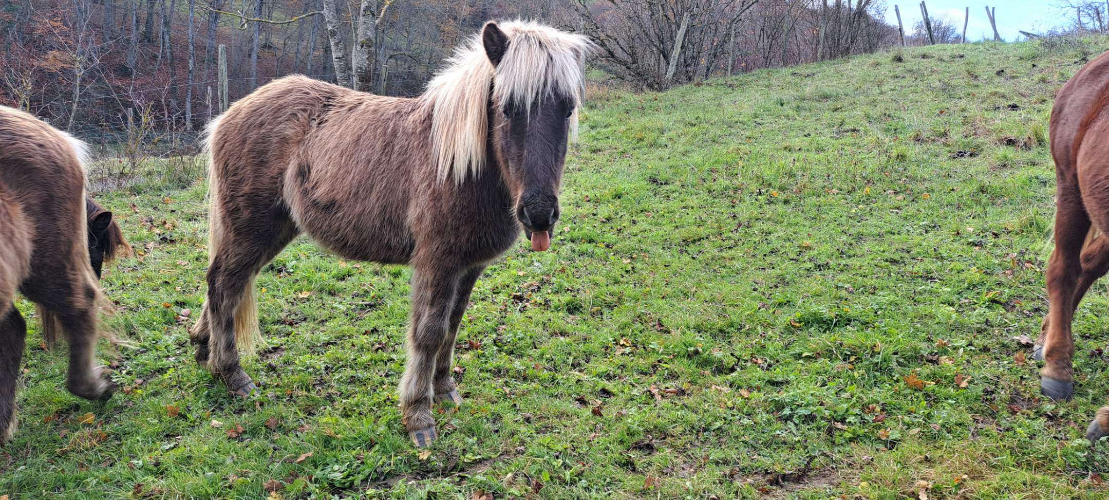 Melissa de Cras est une jument Islandaise pure race de 3 ans, mesurant 1m36 (atteindra environ 1m40 à maturité). Gentille...